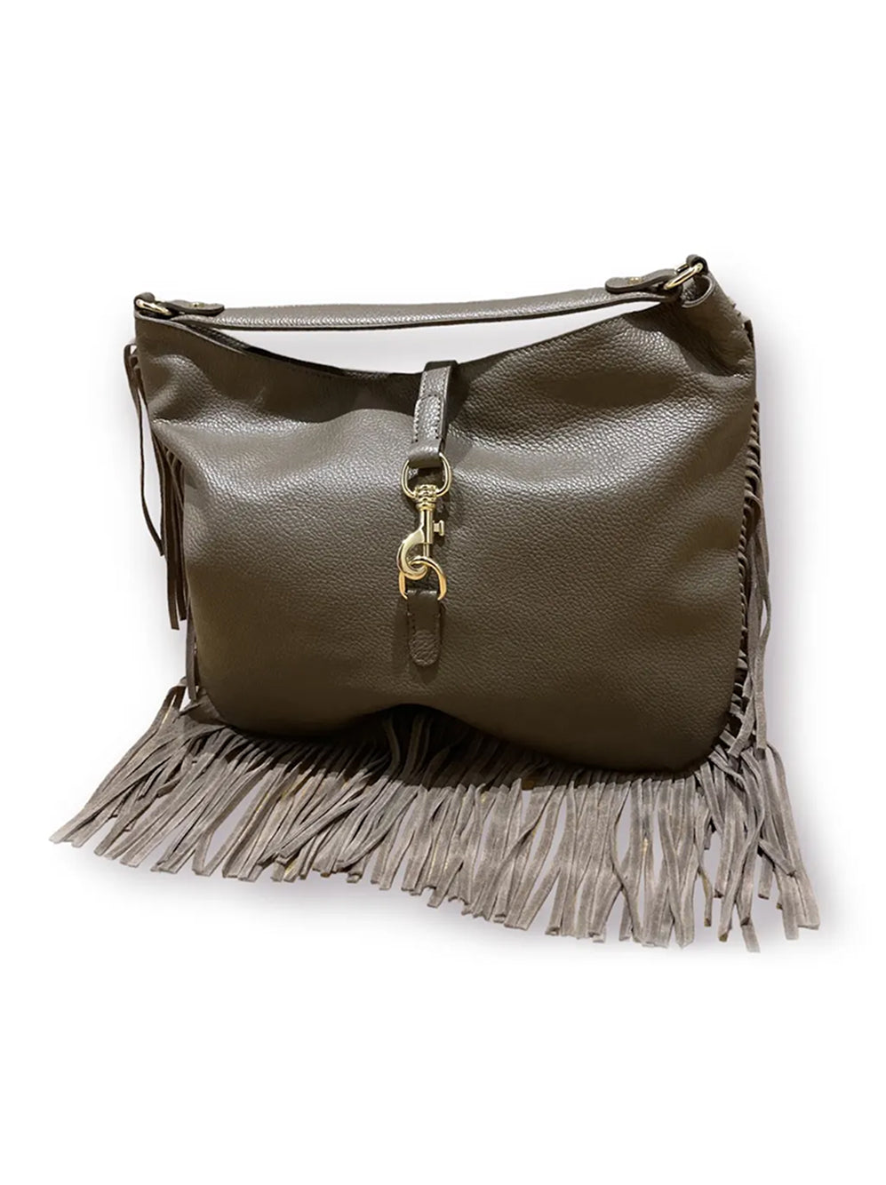 El Bolso de Piel con Flecos es una pieza especial que combina elegancia con un aire desenfadado y moderno. Su diseño destaca por los flecos que le aportan movimiento y un estilo boho-chic, convirtiéndolo en un bolso diferente y con mucha personalidad.